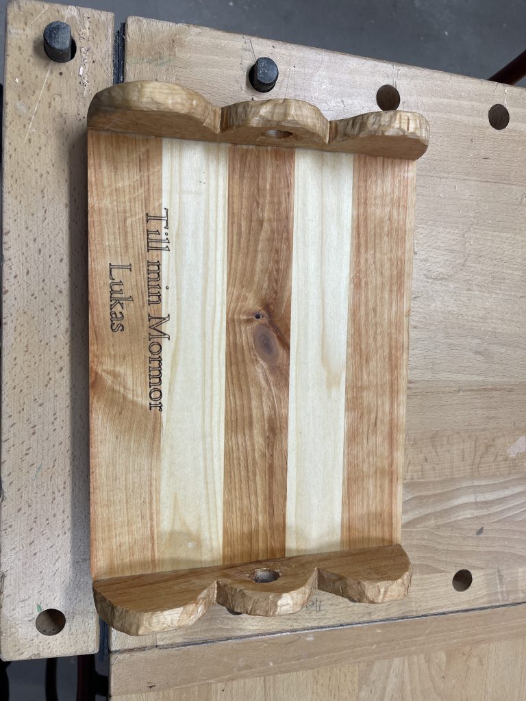Detta tema är att du kan få pröva på olika former av limfogar som kan bli i stort vad som helst. Grundkonceptet är att tillverka sin egen design i form av en skärbräda. Om Du vill utveckla en egen design där foglimning ingår, så är det helt okej. Men då krävs mer självständigt arbete, så starta inte upp för svåra projekt. Vi tänker på miljön, med så lite spill som möjligt. Hellre enkelt projekt som används i köket i många år framöver.