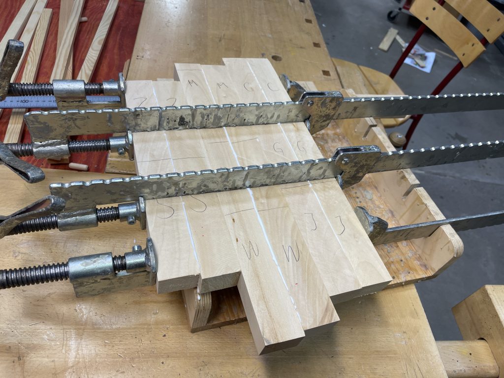 - placera ut stavarna på som du vill limma dom och inspektera att de inte har glapp eller springor i fogarna.